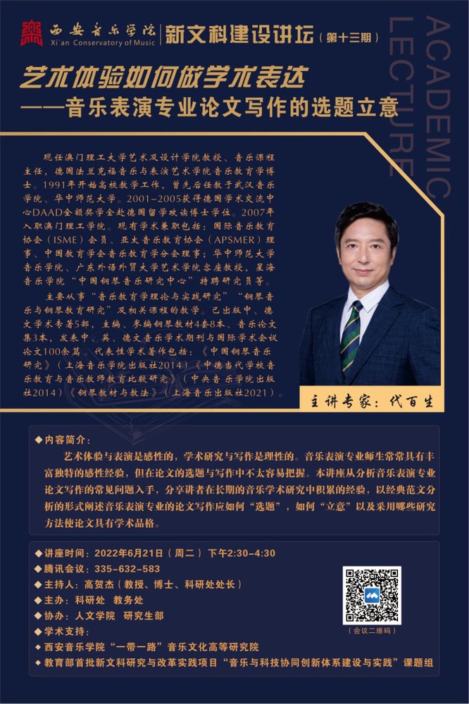 西安音乐学院“新文科建设讲坛”第十三期——主讲专家代百生教授