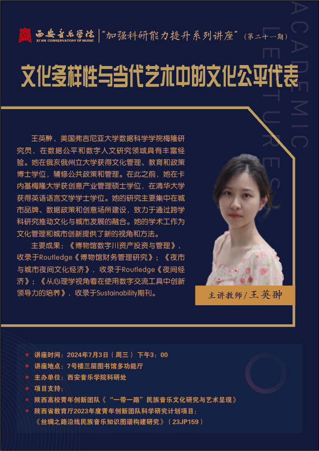 王英翀,美国弗吉尼亚大学数据科学学院梅隆研究员,在数据公平和数字人文研究领域具有丰富经验。她在俄亥俄州立大学获得文化管理、教育和政策博士学位,辅修公共政策和管理。在此之前,她在卡内基梅隆大学获创意产业管理硕士学位,在清华大学获得英语语言文学学士学位。她的研究主要集中在城市品牌、数据政策和创意场所建设,致力于通过跨学科研究推动文化与城市发展的融合。她的学术工作为文化管理和城市创新提供了新的视角和方法。