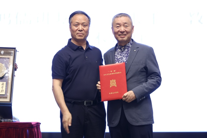 本次讲坛特别聘任张千一教授为我校“一带一路”音乐文化高等研究院高级研究员,校党委书记张立杰向张千一教授颁发聘书。同时,张千一教授向我校赠送了个人著作及音响唱片。