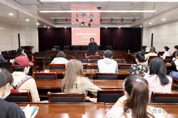 为了进一步为进一步做好2025年度国家艺术基金项目申报工作,同时提升学校教师的科研能力与科研积极性,科研处于近期组织召开了“2025年国家艺术基金项目申报培训会”。会议由科研处处长王恪居主持,学校各院系分管科研领导、专业教师及科研处工作人员参加会议。