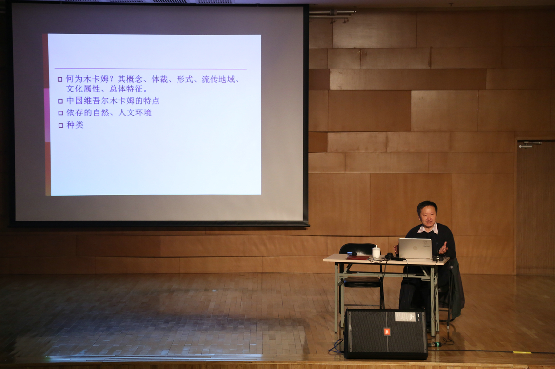 赵塔里木结合新疆地理、历史和风土人情,深入浅出地介绍了全球化与地域化背景中的木卡姆现象及其概念、体裁、形式、文化属性、总体特征。在此基础上,重点讲述了维吾尔木卡姆所依存的自然、社会历史背景,维吾尔木卡姆的分布状况,有关维吾尔族木卡姆的古代文献,十二木卡姆的结构、唱词、使用乐器、演唱场合、演唱大师与代表版本以及刀郎木卡姆的结构和节奏形态等问题。他通过展示大量图片和视频资料,让大家深入了解木卡姆的乐器以及歌舞形式等相关信息,带领现场听众一起学打木卡姆的多种节奏型,在互动中带领大家领略木卡姆的异域风情。讲座对跨界民族音乐深入的研究、扎实的田野、缜密的分析以及严谨的治学态度,对在场师生们启发良多。