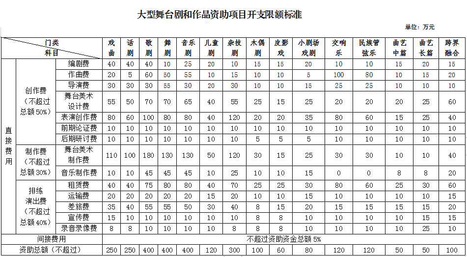 第一节 大型舞台剧和作品资助项目经费开支范围