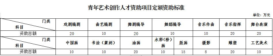 第五条 青年艺术创作人才资助项目实行定额资助(见附件)。