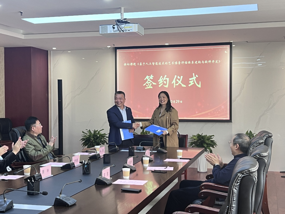 1029日上午,我校嗓音研究中心与小声崟(重庆)科技有限公司,在机关第一会议室举行横向委托课题《基于人工智能技术的艺术评估体系构建与软件开发》签约仪式。科研处处长王恪居、现代学院院长冯勇、声乐系周玲教授、课题负责人屈歌、小声崟(重庆)科技有限公司董事长邵卫、技术总监王国升,及部分课题参研人员参加仪式。