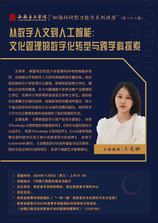“加强科研能力提升系列讲座”第二十二期——从数字人文到人工智能:文化管理的数字化转型与跨学科探索