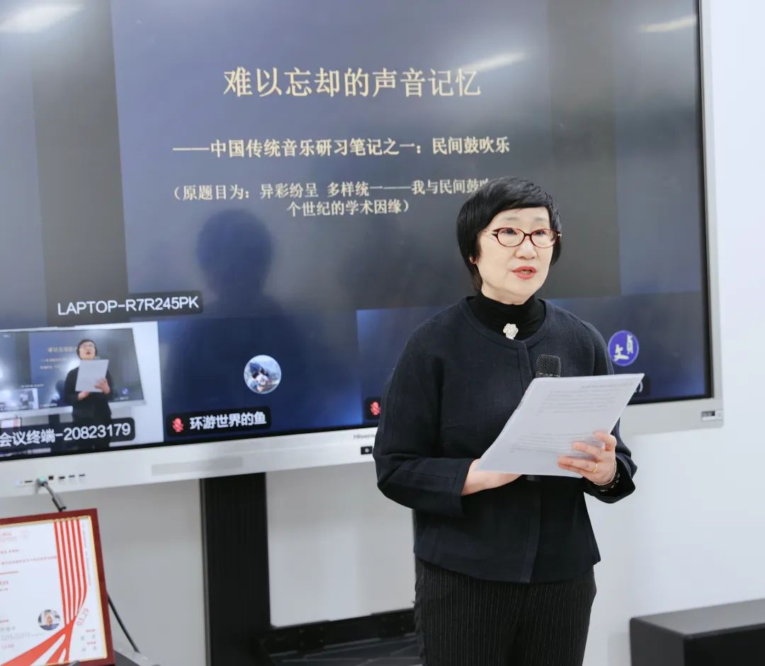 2025年3月29日下午,“华乐讲坛”第三十期在西安音乐学院人文学院举行。著名音乐学家、中国艺术研究院音乐研究所原所长、博士生导师、中国民族管弦乐学会专家委员会副主任乔建中先生开讲《异彩纷呈 多样统一——我与民间鼓吹乐半个世纪的学术因缘》。中国民族管弦乐学会会长吴玉霞、中国音乐学院副院长黄虎、陕西省民族管弦乐学会副会长樊艺凤、西安音乐学院人文学院青年教师徐龙、中国民族管弦乐学会副秘书长宋阳、《中国民乐》报执行总编辑刁艳、考级工作小组副组长张殿新和来自全国多地的艺术院校、表演团体代表在现场聆听。