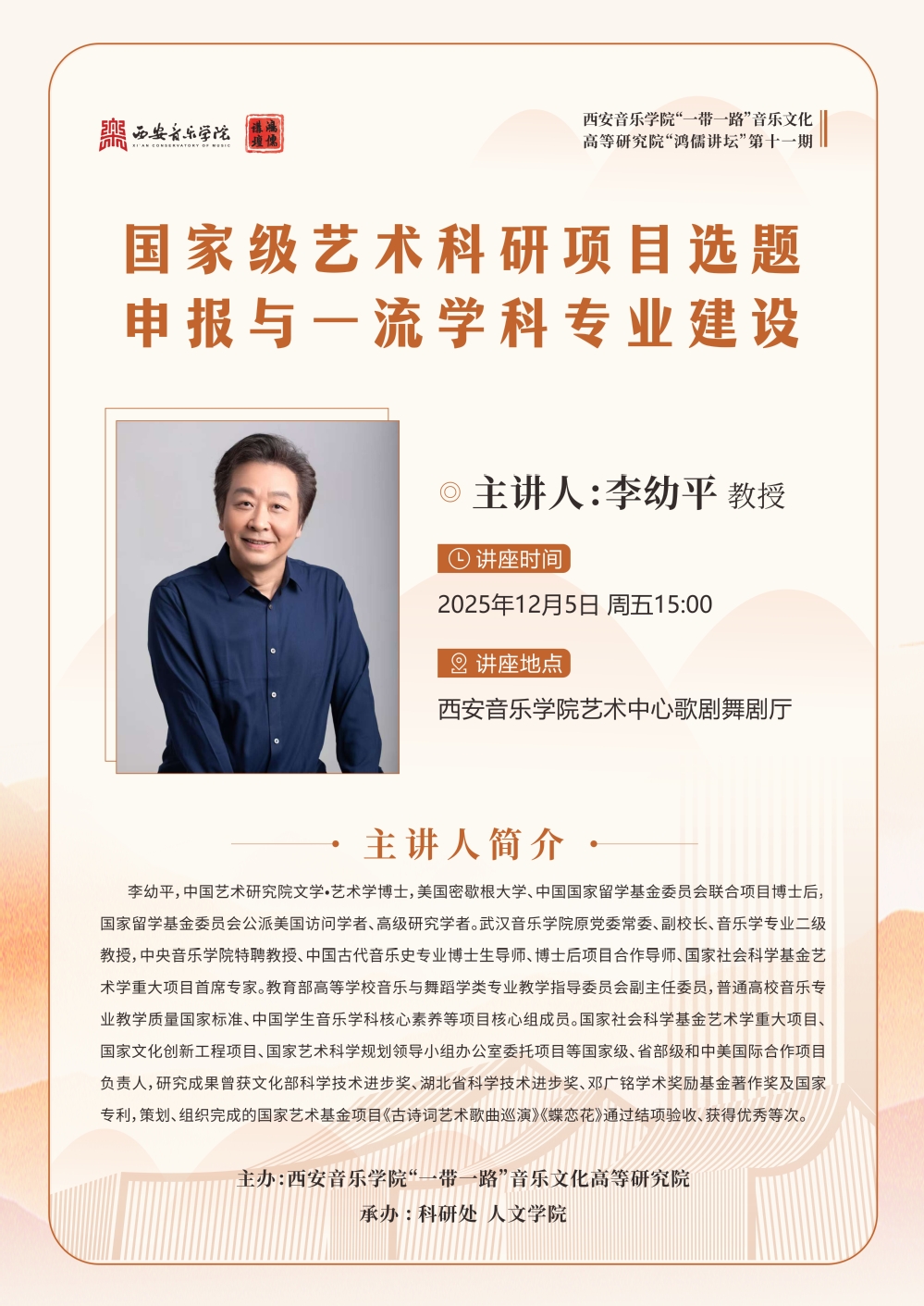 “鸿儒讲坛”第十一期——《国家级艺术科研项目选题申报与一流学科专业建设》