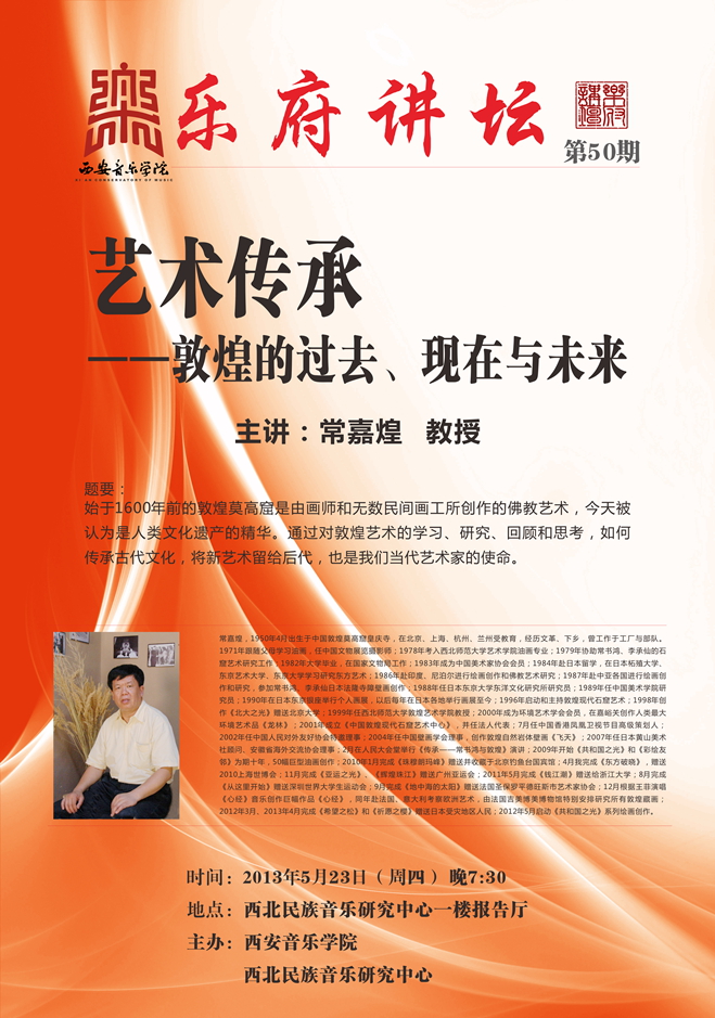 讲座将于2013年5月23日19:30,在西北民族音乐研究中心一楼演奏厅(培训中心一楼)准时开始。