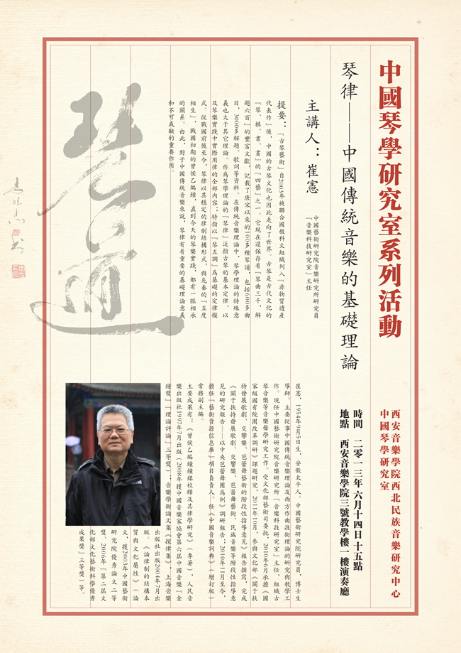我中心中国琴学研究室邀请崔宪教授来我院做2013“中国琴学研究室”系列活动之三的学术活动。