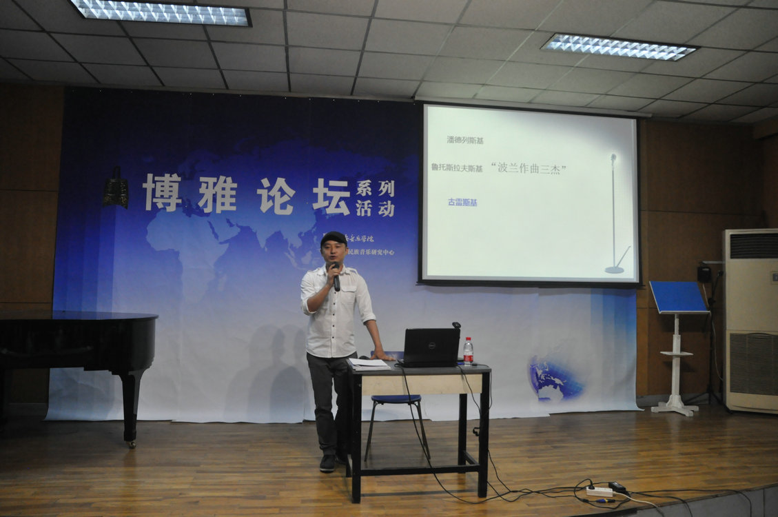 6月10日,2015年度第一期博雅论坛举行第三场学术讲座。本场作曲系青年教师郑飞博士主讲,题为《古雷斯基交响曲研究》。