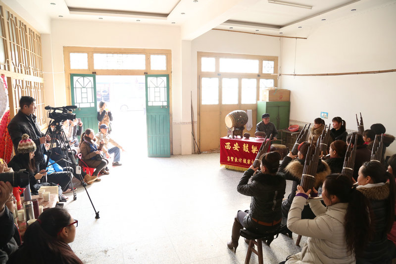 2015年12月18日,副院长韩兰魁带领作曲系、民乐系、民研中心教师以及部分在校研究生,前往周至县南集贤东、西村鼓乐社实地考察西安鼓乐。