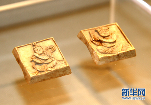 12月19日,西安音乐学院艺术博物馆展出的唐胡人伎乐纹骨雕带板。杨喜龙 摄