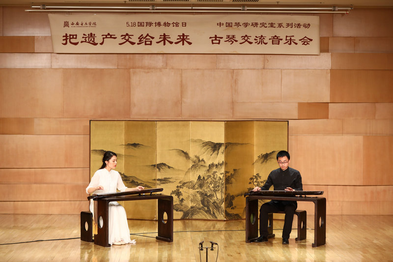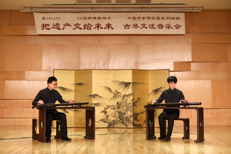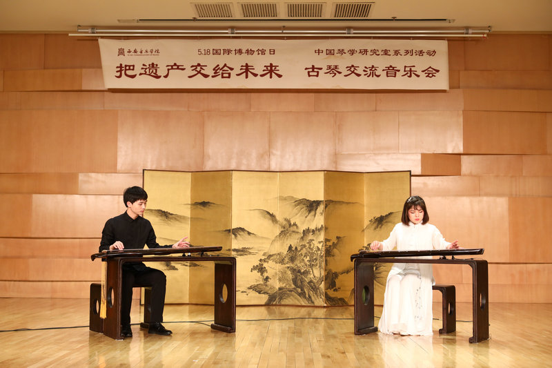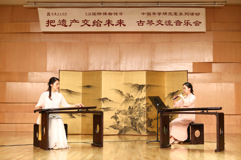 2019年5月18日,在第43个“国际博物馆日”来临之际,我校艺术博物馆与西北民族音乐研究中心中国琴学研究室、音乐学系、民族器乐系举办主题为“把遗产交给未来”古琴交流音乐会,演奏的乐曲包括:《二泉映月》(移植);《流水》(《天闻阁琴谱》1876年)《大胡笳》(《神奇秘谱》1425年)《秋鸿》(《西麓堂琴统》1525年)。