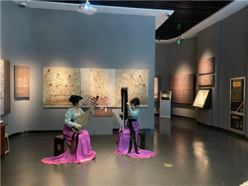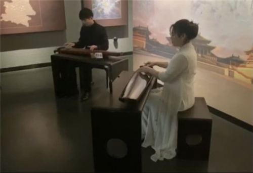 直播活动邀请了陕西历史博物馆陈列展览部副研究馆员王建玲、我校李西林教授、陕西省考古研究院副研究员刘思哲、西安博物院高级讲解员王筱玥等老师,分别对艺术博物馆策展筹建、陕西出土音乐文物情况、中国古代音乐演变,以及馆藏音乐文物、乐谱(图片)等内容进行了详细介绍与系统讲解。主要涉及器物形制、乐器组合演奏形式、音声特性、历史演变、文化价值与历史意义等。直播过程中,结合展览主题与壁画内容,我校民族器乐系副教授赵静、音乐教育学院助教孙清、中国琴学在读硕士研究生、研究室教学基地骨干教师彭天麒、张婉晴分别现场展示了五弦琵琶与唐箜篌(仿制)《婆罗门引》、双琴《流水》两首传统音乐作品。希冀通过“让壁画舞起来、让乐谱响起来、让文物活起来”的展示形式,加深社会大众对我国古代音乐文化的认知与理解。