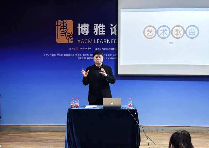 现代音乐学院屈歌博士以《音乐声学及其应用概览——以“不同音高条件下的唱词清晰度研究”为例》为题,围绕音乐声学的概念、研究对象、方法与应运等,从认识论角度理清了音乐声学相关学科问题,并以“不同音高条件下的唱词清晰度研究”为具体案例,介绍了音乐声学应用于歌唱语言研究的具体思路、方法、实施过程与研究结果。作曲系雒鹏翔博士的讲座题为《在音乐创作中如何认识和运用民族民间音乐——从王西麟的音乐创作谈起》,从美学观念和创作技法角度,对王西麟音乐创作中有关民族民间音乐的认识与运用展开探讨,指出在发展求变眼光和现代美学意识影响下,王西麟以“现代化”“交响化”的写作技术重组和结构民间音乐素材,形成其独特的音乐语言和风格特点,对中国现当代音乐创作与学科建设具有重要研究价值和启示声乐系杨楹博士以《德奥艺术歌曲演唱解析》为题,从德奥艺术歌曲起源、演唱注意事项、教学中遇到的问题及解决方法以及对中国艺术歌曲的间接影响等方面阐述了德奥艺术歌曲在教学环节中的实践应用与理论机制。