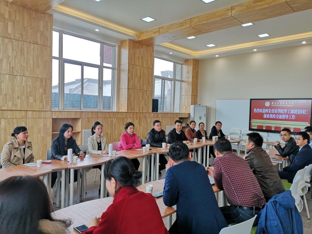 调研交流过程中,马宗方并介绍了该校学生工作的相关情况,对学生工作处科室设置、工作职责、运转机制、辅导员队伍建设等情况做了详细介绍。大学生心理健康指导中心主任王凯则就该校学生心理育人工作的积极做法进行了分享。张津波就我校的品牌“思政与艺术的融合”系列活动进行了分享,包括历年来的晚会演出及实践教学走边防等特色育人工作,得到了兄弟院校老师的好评与称赞,并期望能够与我校在巡演事宜上达成合作。团委书记李强对我校团委的基本情况及特色活动进行了介绍,并分享了“歌声中的中国共产党”特色育人工作,用音乐去讲述党史的创意与思路激发了各位老师的兴趣。随后,团总支书记、辅导员组长王潇和郭雯分别为大家现场演唱了《追寻》和《我和我的祖国》。