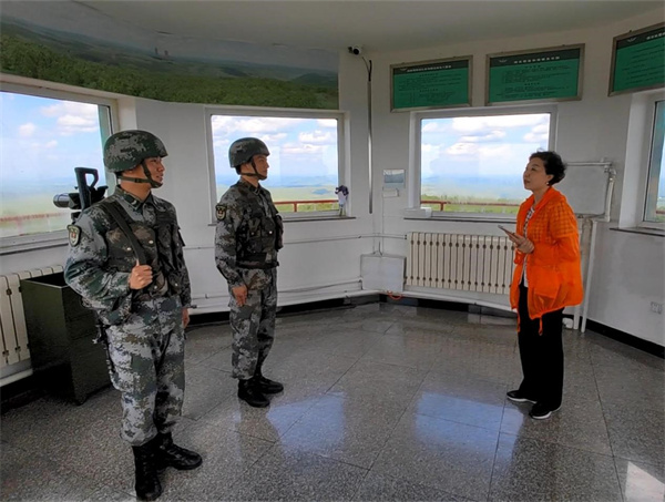 慰问哨所执勤战士是师生此行的重要内容之一。三角山哨所位于中国与蒙古国之间的界河——哈拉哈河附近。在这里,战士们为师生们深情讲述相思树的故事,诉说军人履行使命、戍守边疆的爱国情怀,见证军嫂的无私奉献和对爱的执着坚守,感受人民对子弟兵的深情厚意,一个个感人的故事令师生热泪盈眶。