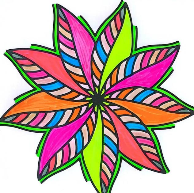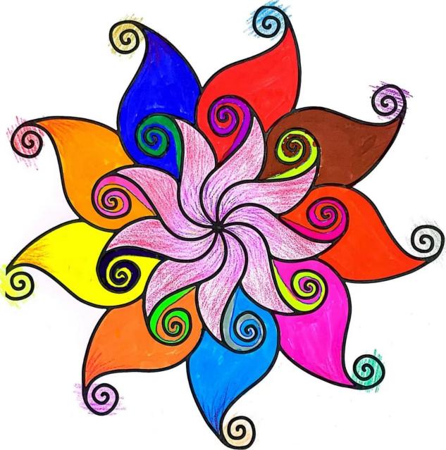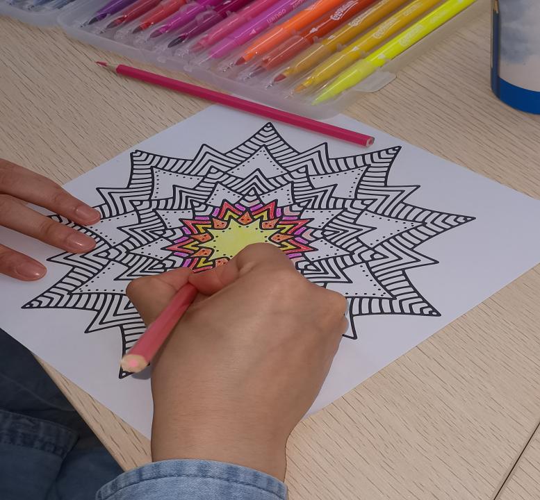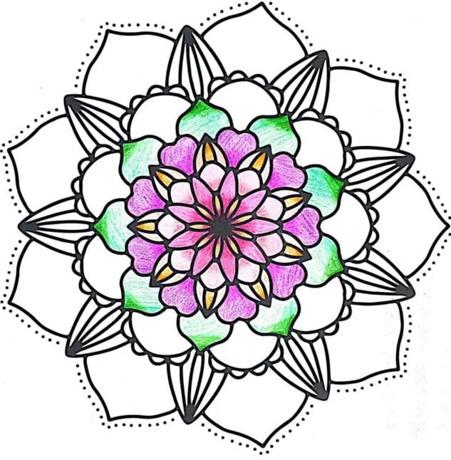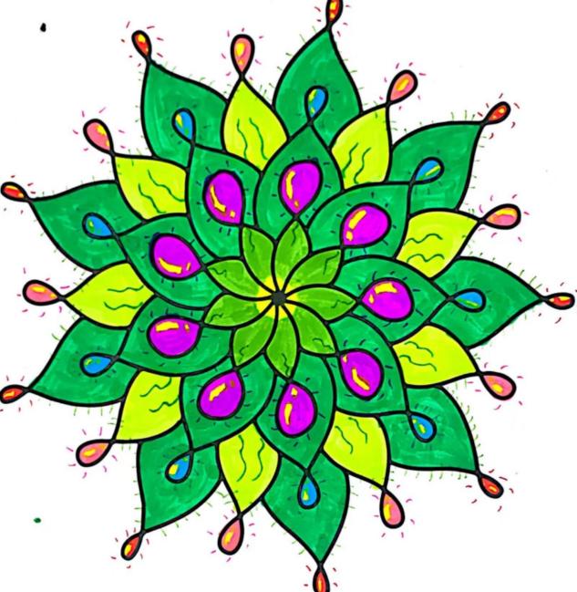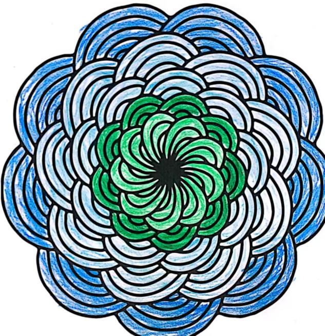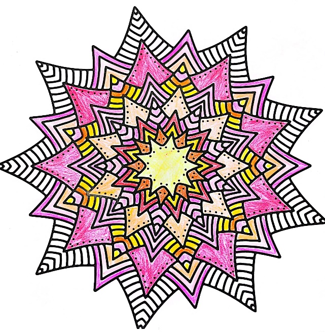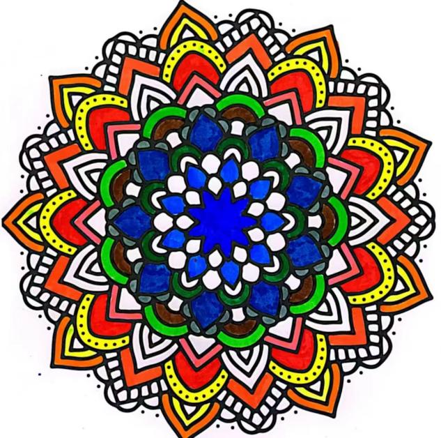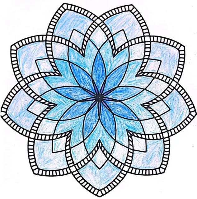 曼陀罗绘画是心理分析荣格学派的理论,具有保护性、凝聚性、整合性、咨询性和超越性的特性,通过曼陀罗绘画能够激发绘画者的内在能量,曼陀罗绘画的过程中就是一种减压和探索自我的过程,能够起到改善情绪、缓解压力、明析自我的作用。曼陀罗绘画能够唤醒内在自性的整合功能,还具有表达和转化情绪的作用,曼陀罗与结构性的涂色有助于减少焦虑,原因是曼陀罗绘画通过凝聚及整合功能,可以增强内心的秩序感,从而减少弥散性焦虑的程度,曼陀罗具有优化情绪的效果。同学们在绘画中感受内心、提高认知、缓解压力。通过彩绘曼陀罗的形式引导学生进行与自己对话,探索自我,接纳自我,从而更加关爱自我。