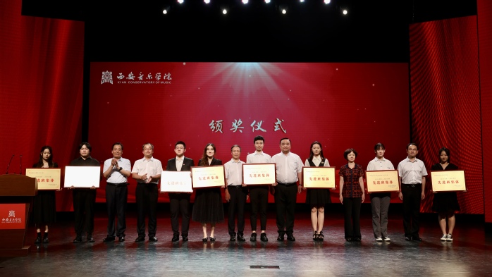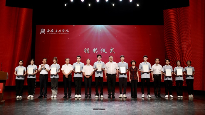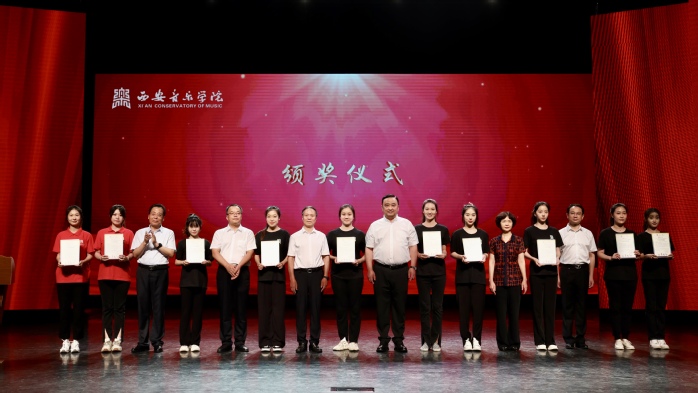 校党委副书记王刚宣读《西安音乐学院关于2020-2021学年国家奖学金评审结果的报告》《关于表彰2020-2021学年国家励志奖学金获奖者的决定》《关于表彰2020-2021学年先进班级、优秀学生干部和优秀学生的决定》《关于表彰2020-2021学年校级奖学金获得者的决定》《关于表彰我校参加“十四运会”开闭幕式、志愿服务工作优秀单位和个人的决定》。