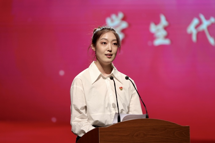 舞蹈学院2019级学生王一鸣作为学生代表发言,表示将珍惜荣誉、戒骄戒躁,为学校发展贡献自己的一份力量。