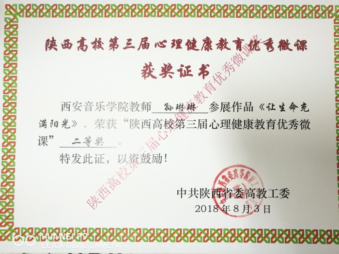 据陕高教生〔2018〕16号文件,省委高教工委公布了陕西高校第三届心理健康教育优秀微课名单,我校心理咨询教师孙琳琳荣获微课比赛二等奖。