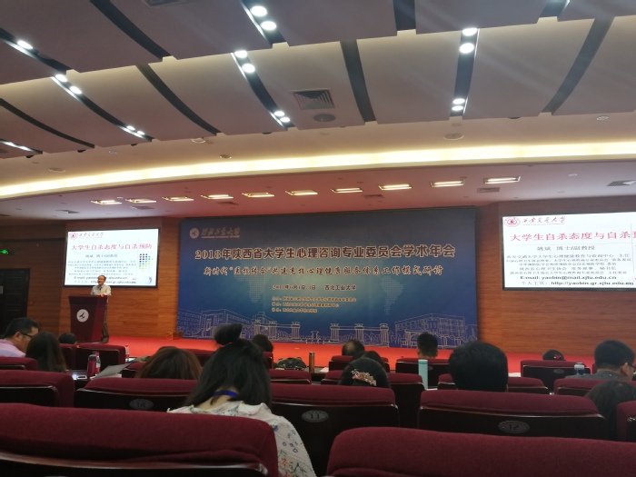 会议分为两个阶段。第一阶段由全省各大高校心理健康老师及省心理卫生协会专家做研讨及专题讲座。中国心理卫生协会精神分析学专业组副组长张天布、陕西省易学会精神病分会常委张辉、西京医院身心科主任王化宁、西安交通大学第一附属医院精神心理卫生科主治医师王崴就“医校结合”共建陕西高校心理健康服务体系工作模式进行现场研讨,各位专家学者共同表示,心理卫生专业医院要与各大高校紧密联合,建立健全“医校联动”机制,高校老师要引导学生树立心理求助、及时就医的思想。第二阶段为专题讲座环节,西安石油大学教授、陕西省高校心理素质教育研究会会长郑林科作《高校生命教育:心理危机预防的前置键》、长安大学心理健康中心主任贠丽萍作《神奇的圆圈:危机干预中的团体辅导》、陕西师范大学心理健康咨询中心主任毛志宏作《未雨绸缪:大学生心理危机识别》等从大学生常见的心理问题:焦虑、抑郁、自杀预防、心理创伤治疗等方面深入浅出地为大家作专业讲解。