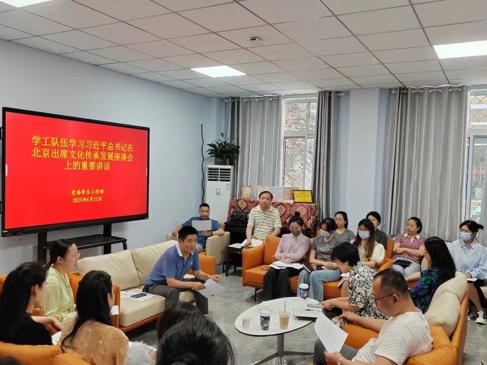 6月12日下午,学工部组织我校学工队伍学习习近平总书记在北京出席文化传承发展座谈会上的重要讲话精神。会议由学工部部长张凌主持,各院系专职副书记、辅导员、学工部全体同志参加学习。
