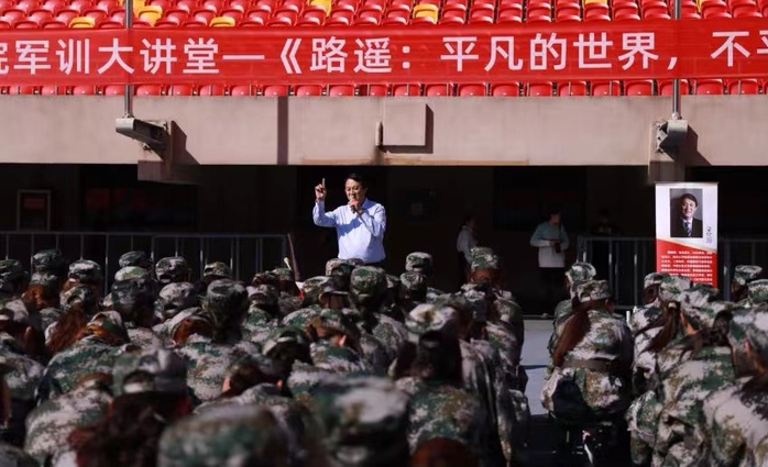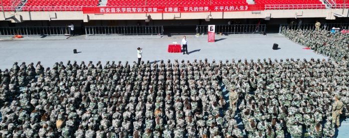10月15日上午,由西安音乐学院党委学生工作部主办的“西安音乐学院军训大讲堂”系列讲座,在陕西省体育场顺利举行。2022级、2023级参训学生和指导员参加讲座,学工部副部长郭雯主持。本次讲座特邀中国文联文艺研修院特聘导师、陕西省作家协会副主席、二级教授,延安大学路遥与知青文学研究中心主任梁向阳教授,作题为《路遥:平凡的世界,不平凡的人生》的专题讲座。