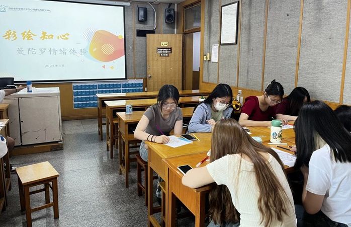 为帮助学生缓解学习生活压力,释放情绪,促进自我认知,5月28日中午,由大学生心理援助与研究中心主办的“彩绘知心”曼陀罗情绪体验活动在4号教学楼如期开展。本次活动由我校心理中心专职教师孙琳琳主持,各院系40余名同学参与。