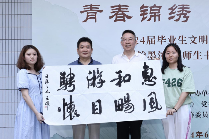 我校一直非常重视以文化人、以美育人,注重培育学生的美育素养,通过组织本次现场书画创作艺术实践,在笔墨纸砚间提升学生的审美情趣,增强了文化素养,展示了我校学生昂扬向上的精神风貌,寄托了学校对毕业生们的深切关怀和期望。相信2024届毕业生们一定能够在未来的人生道路上,在努力实现中华民族伟大复兴的过程中,把学校和师生们寄予的厚望转化为实际行动,披荆斩棘、勇往直前、开拓创新、建功立业,把梦想蓝图不断变为美好现实。