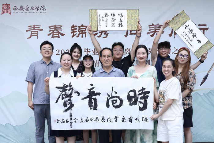 学工小院里书香盈袖,翰墨飘香,王刚和学校关心下一代委员会成员雷长安、韩明廉、杨保存,以及舞蹈学院分党委书记王炜等书法家,纷纷挥毫泼墨,寄情于书,为即将步入人生新阶段的毕业生们送上临别赠言与美好祝愿,吸引众多学生驻足围观。书法家们字迹苍劲有力,力透纸背,每一笔每一划都凝聚着对毕业生的深情关切与殷殷期盼,“云程万里,奋斗启航““初心不改,砥砺前行”“鹏程万里,不负韶华”....这些赠言中,有的寓意毕业生们能始终保持一颗初心,在人生的道路上坚定前行,勇敢地开启新的人生旅程;有的则祝福他们能如同翱翔在万里长空的雄鹰,用自己的努力和奋斗书写精彩的篇章。
