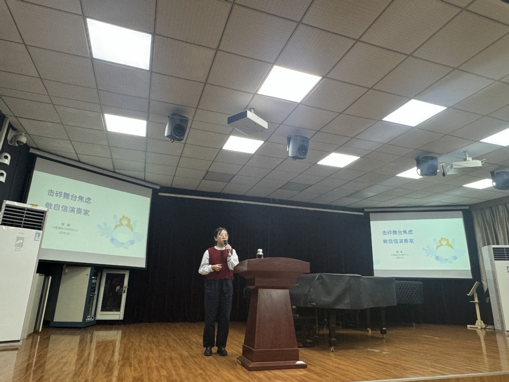 在第33个世界精神卫生日到来之际,为提高学生心理健康素养,营造健康的心理氛围,10月9日下午,学工部大学生心理援助与研究中心组织开展了《击碎舞台焦虑 做自信演奏家》专题讲座。中心专职教师、博士刘佳主讲。讲座由大学生心理援助与研究中心主办、钢琴系协办,100余名学生代表参加。