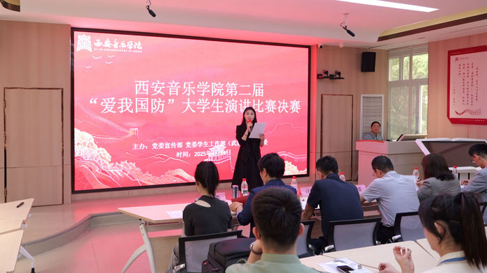 为深入贯彻习近平强军思想,贯彻落实习近平总书记关于加强全民国防教育的系列重要指示精神,进一步强化大学生国防意识,培育军事理论素养,由党委宣传统战部、党委学生工作部(武装部)、校团委共同主办的西安音乐学院“第二届‘爱我国防’大学生演讲比赛”于4月24日在艺术思政虚拟仿真体验教学中心举行。党政办公室、党委宣传统战部、纪委综合室、马克思主义学院、党委学生工作部等部门负责同志出席本次比赛并担任评委。