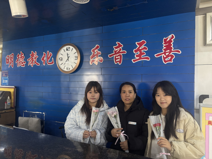 活动现场气氛热烈,同学们纷纷用彩色签字笔在留言展板上写下真挚心声。“坚韧勇敢、韧性善良、独立自信……”是同学们心中女性力量的代名词,“我要做老师、我想当导演……”同学们的字句间既有对榜样的致敬,亦不乏对自身价值的深度剖析。一名女生在“祝福”板块写下“不要活在别人的定义里”,“所有女孩,自立自强你可以!”引发了同学们的热烈响应。同时,活动现场还为老师、食堂阿姨、宿管阿姨等在各自岗位上熠熠发光的女性送上了康乃馨,向她们致以节日的祝福和崇高的敬意。