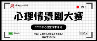 各院系:为进一步推动大学生心理健康教育工作,使心理健康教育更加贴近大学生的生活,帮助大学生正确认知自我,掌握必要的心理调适方法,我校特举办校园心理情境剧比赛。具体安排如下:一、参赛形式 参赛剧目要求视频报送。 二、作品要求心理剧剧情以再现大学生生活中的心理矛盾冲突为主题,以大学生活为主要内容,题...