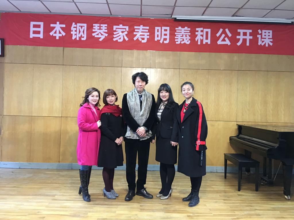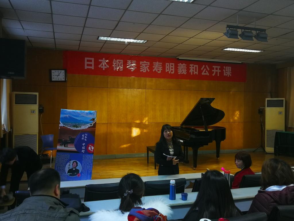 寿明老师向大家做了简短的自我介绍,分享了自己的求学经历及艺术成就。寿明老师演奏了普罗科菲耶夫的《罗密欧与茱丽叶》,以丰富的表现力和演奏手法诠释了乐曲的情感表达与含义。随后,我中心三位优秀的钢琴老师参加了寿明老师的大师课,寿明老师针对指法、音色控制、对作品的理解程度认真的为三位老师做了指导,并强调在演奏过程中,要学会与钢琴交流、通过音乐沟通,达到内心的共鸣与情感上的表达。音乐是声音的艺术,音乐的美更是通过演奏者用心的演绎呈现而来。此次寿明義和老师的讲座,向大家传授了更多的演奏技巧和方式,并以独特的见解在讲学中一一展示,在座的老师们如沐甘霖,受益匪浅。最后寿明老师对三位老师的演奏给予了高度评价,同时向我们介绍了日本钢琴启蒙教育的情况,讲座在一片掌声中结束。