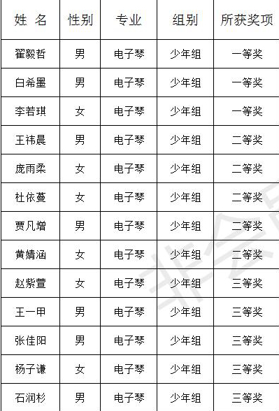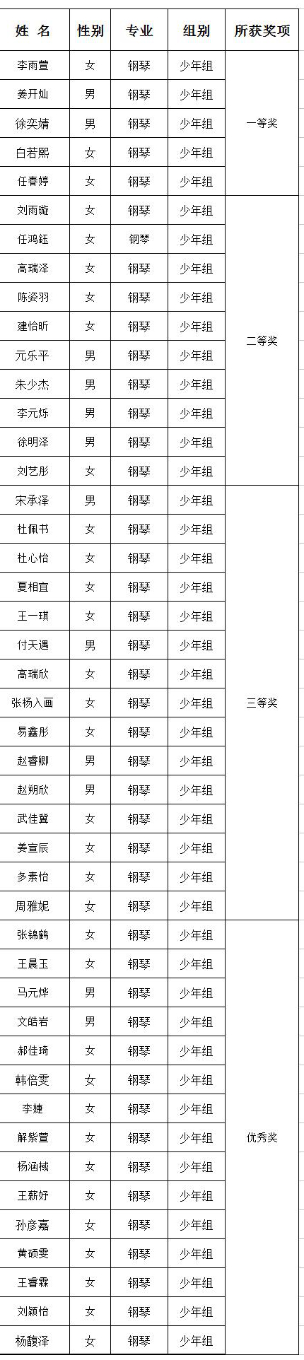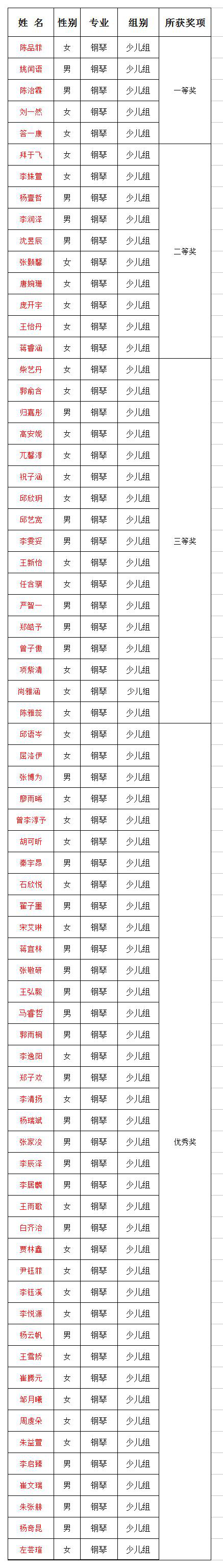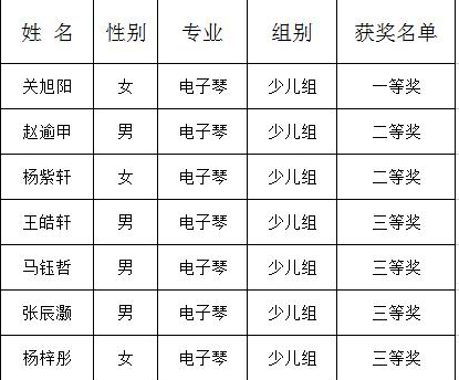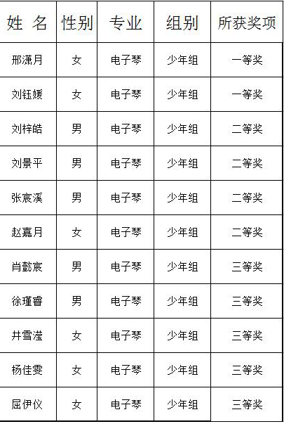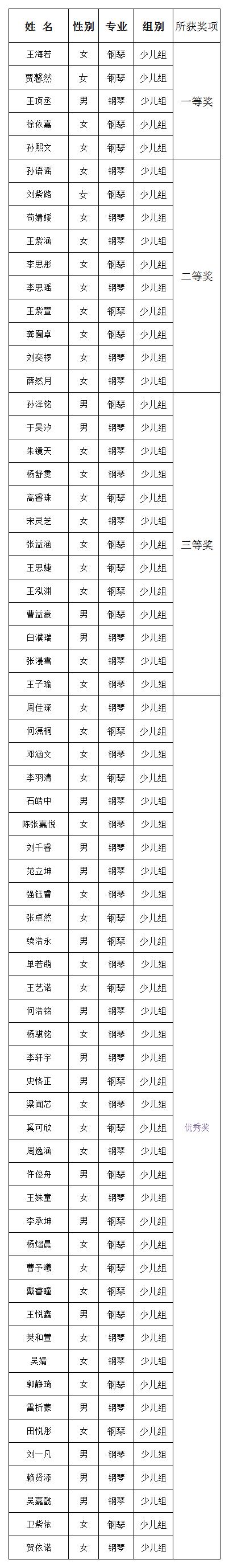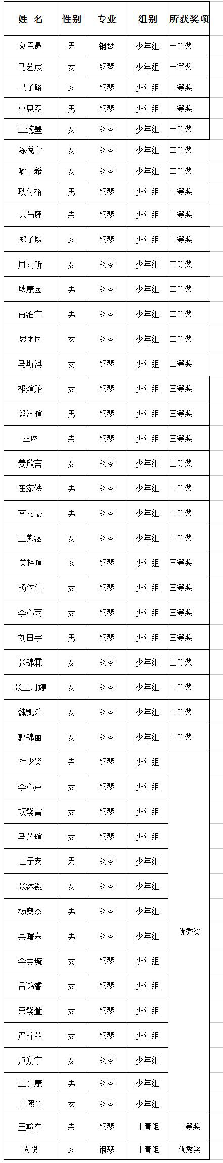 园艺杯获奖名单(钢琴、电子琴、舞蹈)