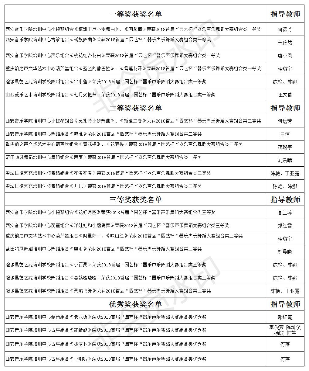 1、所有获得一、二、三等奖的参赛选手请于7月29日15点在西安音乐学院学术厅一楼参加2018首届“园艺杯”器乐、声乐、舞蹈大赛颁奖音乐会,我们将现场颁发奖状。请所有获奖选手着正装出席。