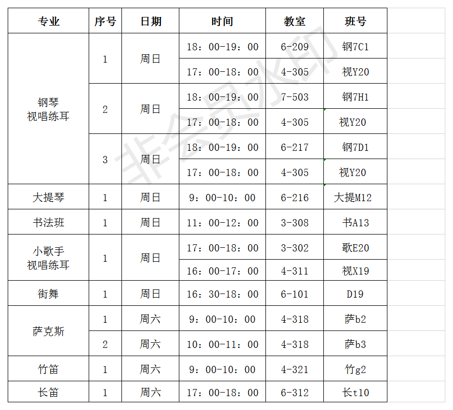 培训考级中心2019年11月第二期各专业零基础新班招生信息现已公布。因名额有限,请各位学员选好合适自己时间的班级后,到音乐学院培训中心一楼办公室报名交费。