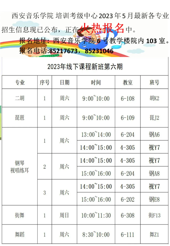 培训考级中心2023年5月各专业招生信息(总第六期)