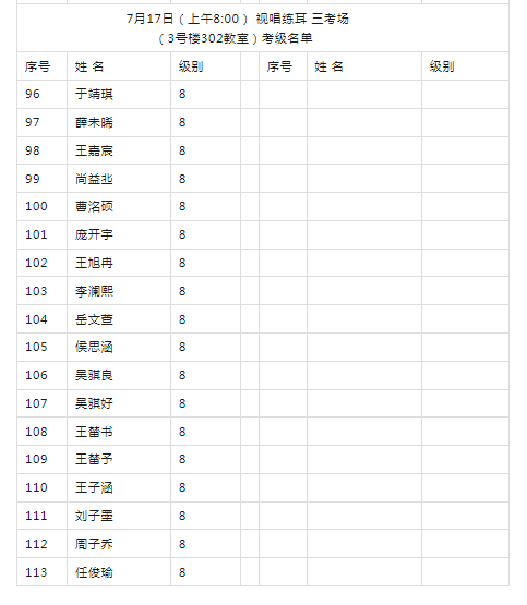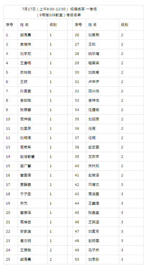 西安音乐学院培训考级中心本部学员2023年夏季考级安排通知(视唱专业)
