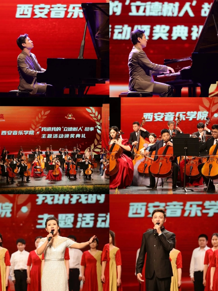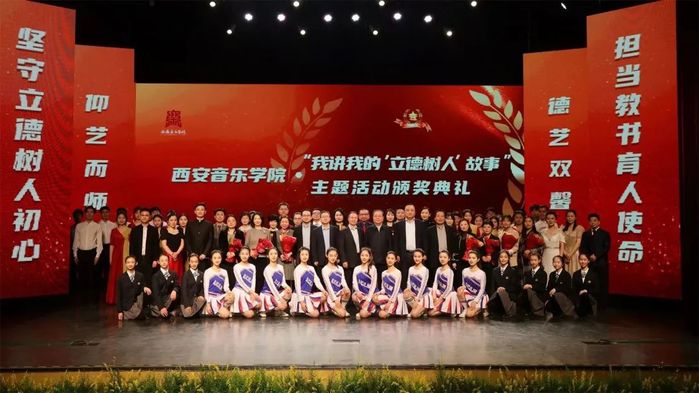 “我讲我的‘立德树人’故事”主题活动,是西安音乐学院深入贯彻习近平总书记关于教育的重要论述和教师队伍建设的重要指示精神,落实教育部《关于在教育系统开展师德专题教育的通知》要求,推进《陕西省师德师风建设三年行动计划(2021-2023年)》的重要活动之一。去年的宣讲活动贯穿全年,活动对象面向一线教师,先由各院系组织宣讲,最终来自教学一线的20位教师站在学校舞台,将自己在教育教学实践中发生的鲜活事例和感人故事面向师生娓娓道来。表彰典礼现场回顾了“我讲我的‘立德树人’故事”主题活动剪影,并在文艺表演中颁发了特等奖,一、二、三等奖及优秀奖。