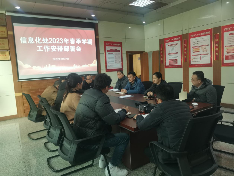 2月27日上午,信息化处召开2023年春季学期工作安排部署会,会议总结寒假以来各项工作完成情况、安排部署新学期各项工作任务,部门全体人员参加,会议由信息化处副处长秦涛主持。