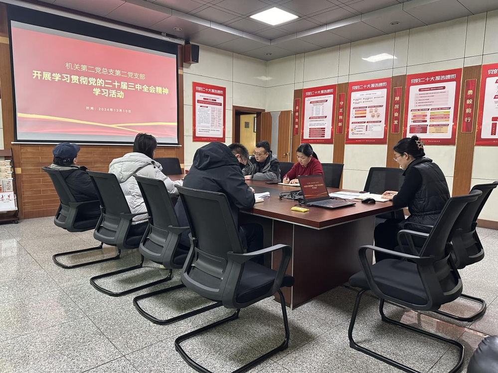 12月10日下午,机关第二党总支第二党支部开展学习贯彻党的二十届三中全会精神学习活动,支部全体党员参加学习。会议由支部书记康欣欣主持。