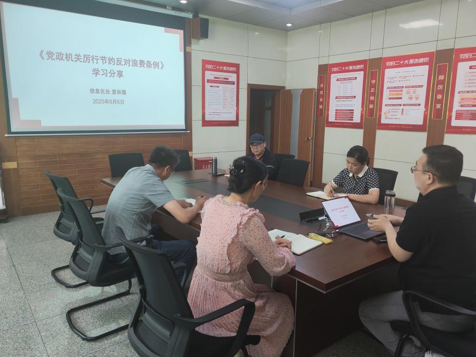 为推动深入贯彻中央八项规定精神学习教育走深走实,进一步强化党员干部厉行节约、反对浪费的责任意识,6月6日下午,信息化处副处长袁林德以“《党政机关厉行节约反对浪费条例》学习分享”为题,为全体党员上了一堂专题党课。