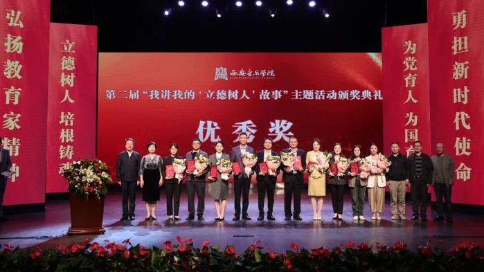 10月25日,由党委宣传部、党委教师工作部、人事处、艺术中心、教师发展中心联合举办的第二届“我讲我的‘立德树人’故事”主题宣讲活动暨颁奖典礼在艺术中心歌剧舞剧厅成功举办。陕西省教育厅教师工作处三级调研员王小峰及兄弟院校相关领导应邀出席活动并担任评委。校党委书记张立杰,院长王真,党委副书记李宝杰、王刚,党委副书记、纪委书记、省监委驻校监察专员易红彬,副院长仲廷虎、强陆平、侯颉出席。各院系师生代表及学校副科级以上干部等300余人参加本次活动。