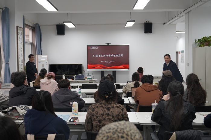 为深入贯彻落实国家教育数字化战略部署,全方位提升教师数字化教学创新能力,积极探索人工智能技术与教育教学深度融合的有效路径,4 月 2 日,教师发展中心联合人文学院,特邀西安电子科技大学高级工程师陈浩博士,在我校人文学院会议室成功举办《AI 基础认知与音乐教育应用》专题讲座。来自人文学院、马克思主义学院、音乐教育学院、现代音乐学院等教学单位的师生参与本次活动。