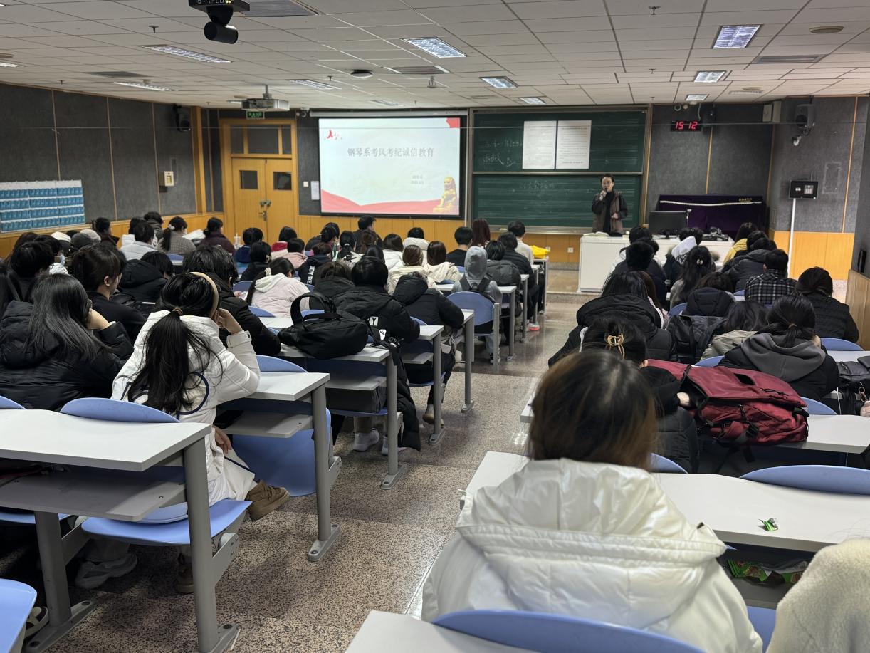 为进一步加强钢琴系学风建设,强化考风考纪诚信教育。1月3日下午,钢琴系全体学生在5号教学楼417教室召开学期末“考风考纪”诚信教育会议。