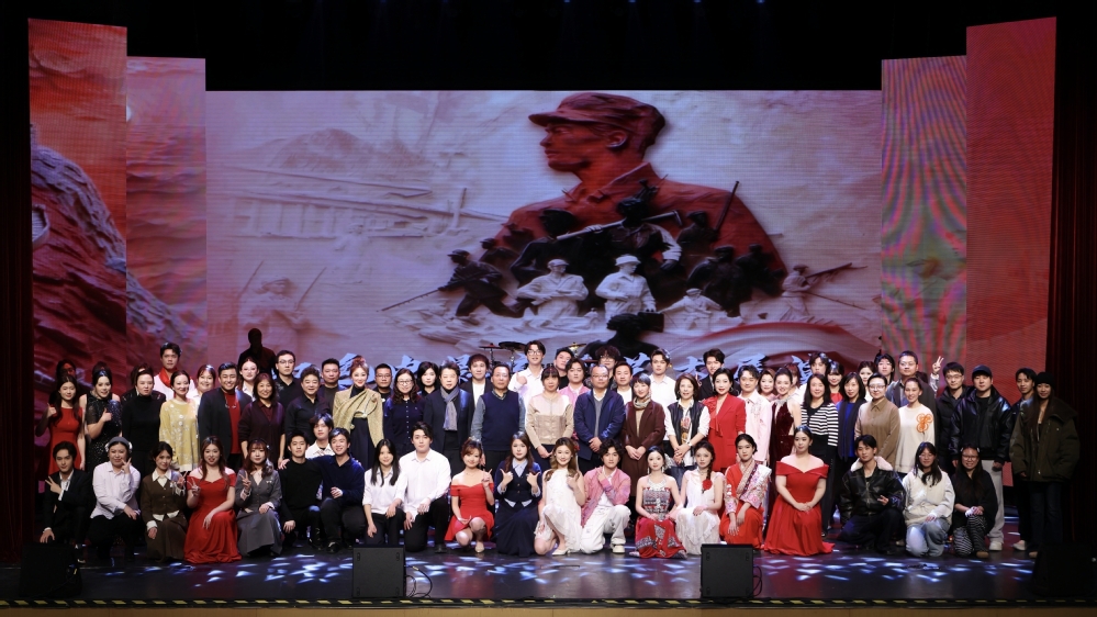 在“星火初燃,信仰之光”篇章,《绒花》的深情演绎让党员们深切感悟革命者的青春奉献,《流金岁月》的明快节奏则再现了革命年代的乐观豪情;“烽火弦歌,人民之声” 中,《映山红》的优美和声与《以人民的名义》的时代表达,既歌颂了军民同心的奋斗史,更强化了“人民至上”的价值认同。当《我爱你中国》《天耀中华》等曲目奏响时,磅礴旋律与深情演唱引发全场共鸣,让党员们在艺术熏陶中感受新时代的奋进力量。整场演出将红色经典与现代音乐语言相融合,既是西安音乐学院“艺术思政”与“美育浸润”双轨育人模式的生动实践,更成为传承红色血脉的鲜活教材。