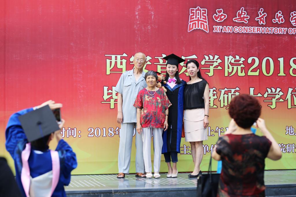 毕业典礼在《西安音乐学院校歌》中落幕。之后,143名研究生与学校领导和导师合影留念。